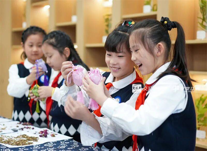 10月22日是世界传统医药日,学生在泰州市姜堰区实验小学教育集团北街北校区,体验制作中草药香囊,了解中医药知识。周社根 摄 视觉江苏网供图