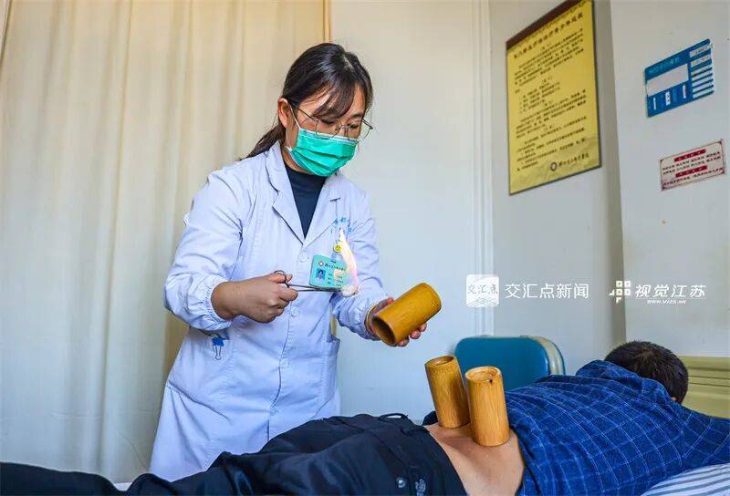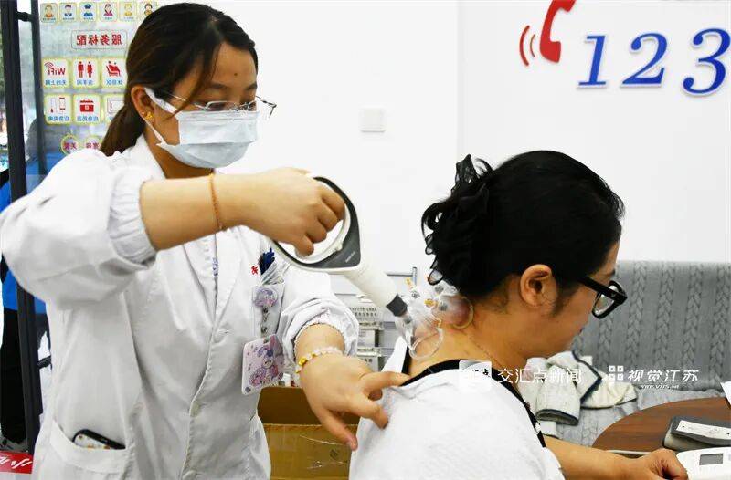 10月22日是世界传统医药日,医生在扬州市江都中医院康复科为市民治疗,守护市民健康。任飞 摄 视觉江苏网供图