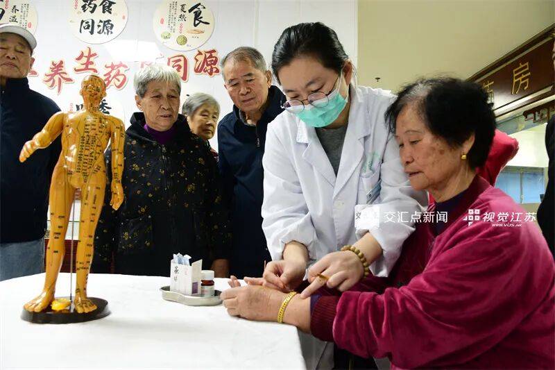 10月22日,镇江市七里甸街道金星社区联合宝塔路社区卫生服务中心中医馆开展“感受中医魅力”活动,医务人员为社区居民讲解中医药与健康养生知识,提供针灸、推拿等义诊服务。石玉成 摄 视觉江苏网供图