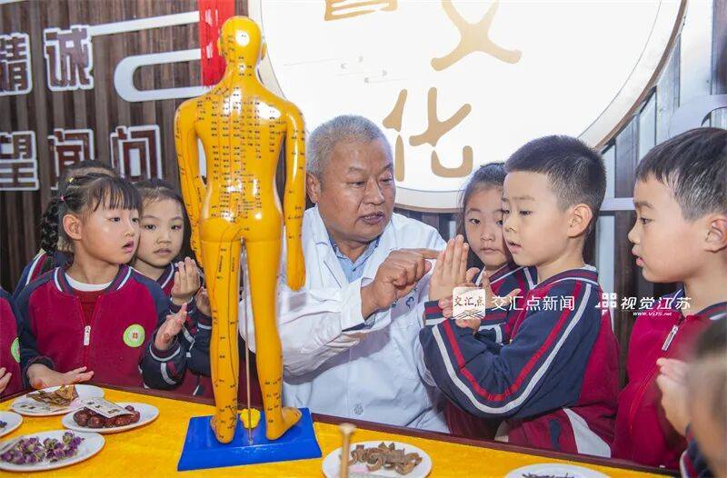 10月16日,宿迁经济技术开发区三棵树街道朱庄社区中医阁开展“中医文化课堂”活动。中医师带领孩子,通过学习人体经络穴位等内容,感受中医传统文化魅力,迎接世界传统医药日。徐江海 摄 视觉江苏网供图