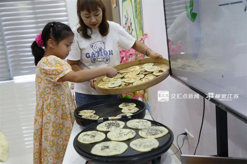 10月6日,无锡市锡山区安镇街道吼山社区开展中药麦饼制作活动,孩子在家长和志愿者的陪伴下,体验制作中药麦饼,寓教于乐,学习中医药知识。盛国平 摄 视觉江苏网供图