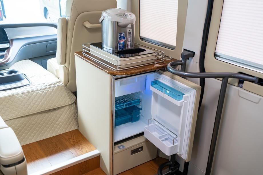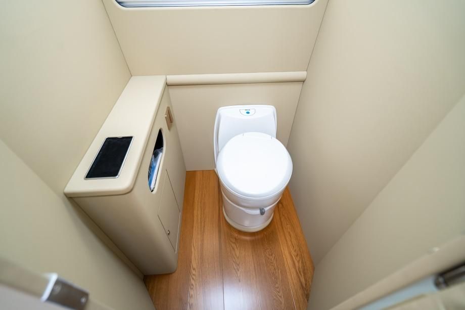 车尾设独立卫生间,配备便携式马桶与折叠洗手池,顶部嵌入静音换气扇,使用时空气流通无异味;卫生间门采用与内饰同色软包设计,闭合后与座舱融为一体,清洁便捷易维护,彻底解决长途出行 “如厕难” 问题,无论是商务差旅还是家庭旅居,都能享受便捷舒适。