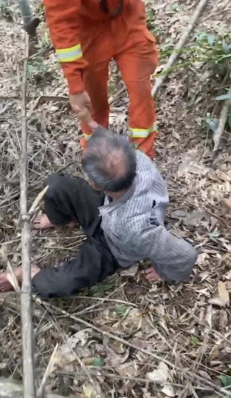 直到第九天,我们又找到一捆用粽叶捆好的新鲜柴火,这下能确定,老人一定还活着。第十天,广域搜救犬终于定位到了老人。我们从上往下看时,只能看到他靠坐在那里,根本不敢确定是生是死。直到搜救犬靠近,老人突然动了一下,用本地话问“这狗会不会咬人” ,我们才松了口气。